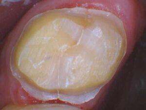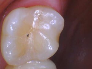 Cracked teeth can be difficult to diagnose. Many of our teeth have hair-line fractures and can be fine for years, but one hard bite, and that can change instantly. This patient was complaining of pain on biting pressure when we diagnosed him with Cracked Tooth Syndrome. The tooth was hypersensitive to hot/cold, and any biting pressure. We had an Endodontist evaluate tooth #15, but they determined no root canal was necessary at this point. We placed a full coverage, same-day ceramic crown over the tooth, and his pain was resolved. Left untreated, the tooth would have needed a root canal, or worst-case scenario, an extraction if the tooth would have split in half. At Water Tower Dental Care in Chicago, we have the technology to take magnified intra-oral pictures, 3D CT radiographs, trans-illumination, and other diagnostic tools to help find and treat these conditions before they become a bigger problem. If you feel like you may have a cracked tooth, or you have teeth that are sensitive to pressure, give us a call…we can help.